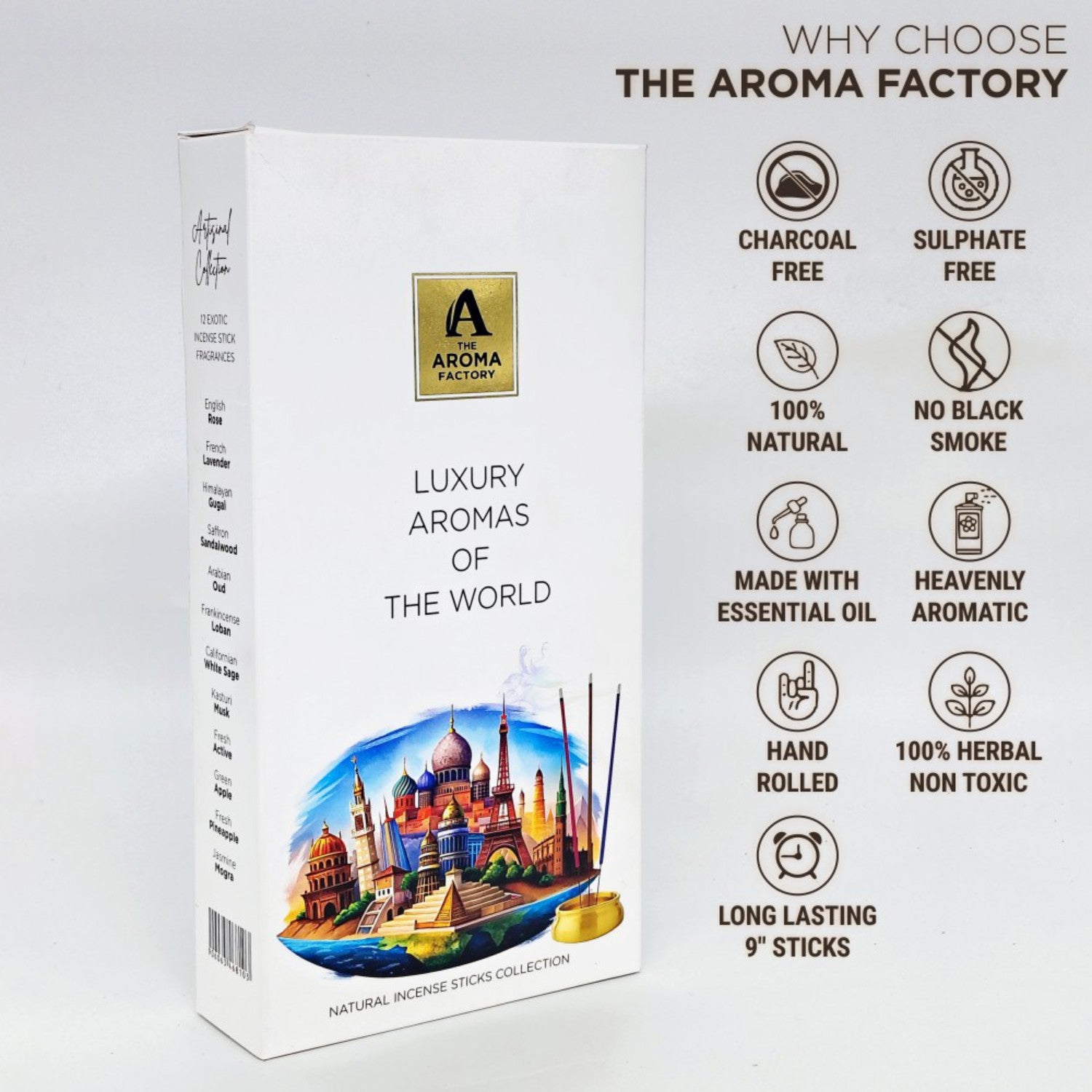 The Aroma Factory Premium Incense Sticks 12 Agarbatti Fragrances x 20 sticks each, Gift Set, 240 sticks